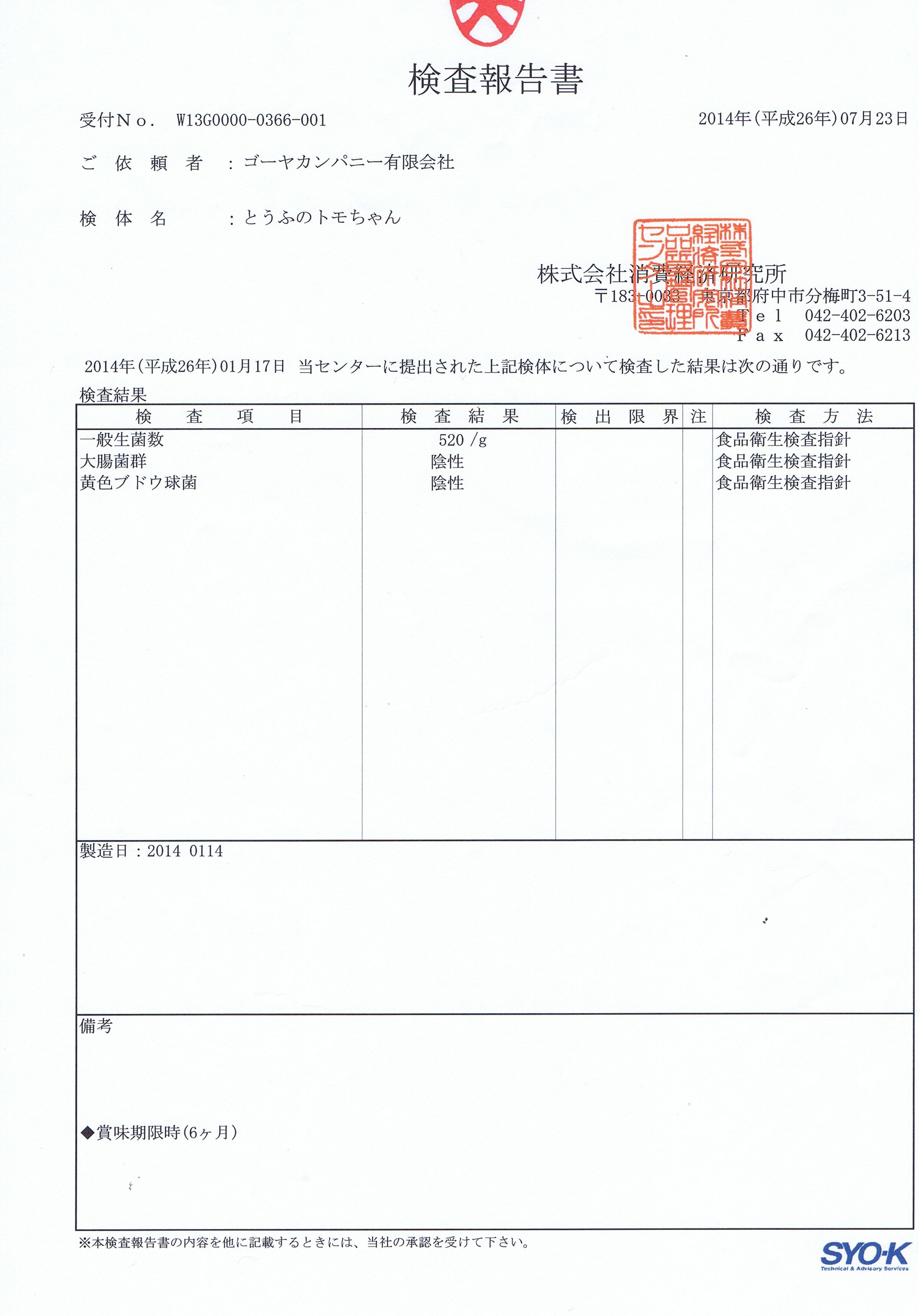 島豚ごろごろ_菌検査(2013.1.23) 島豚ごろごろアルコール含有量(2016.5.26)