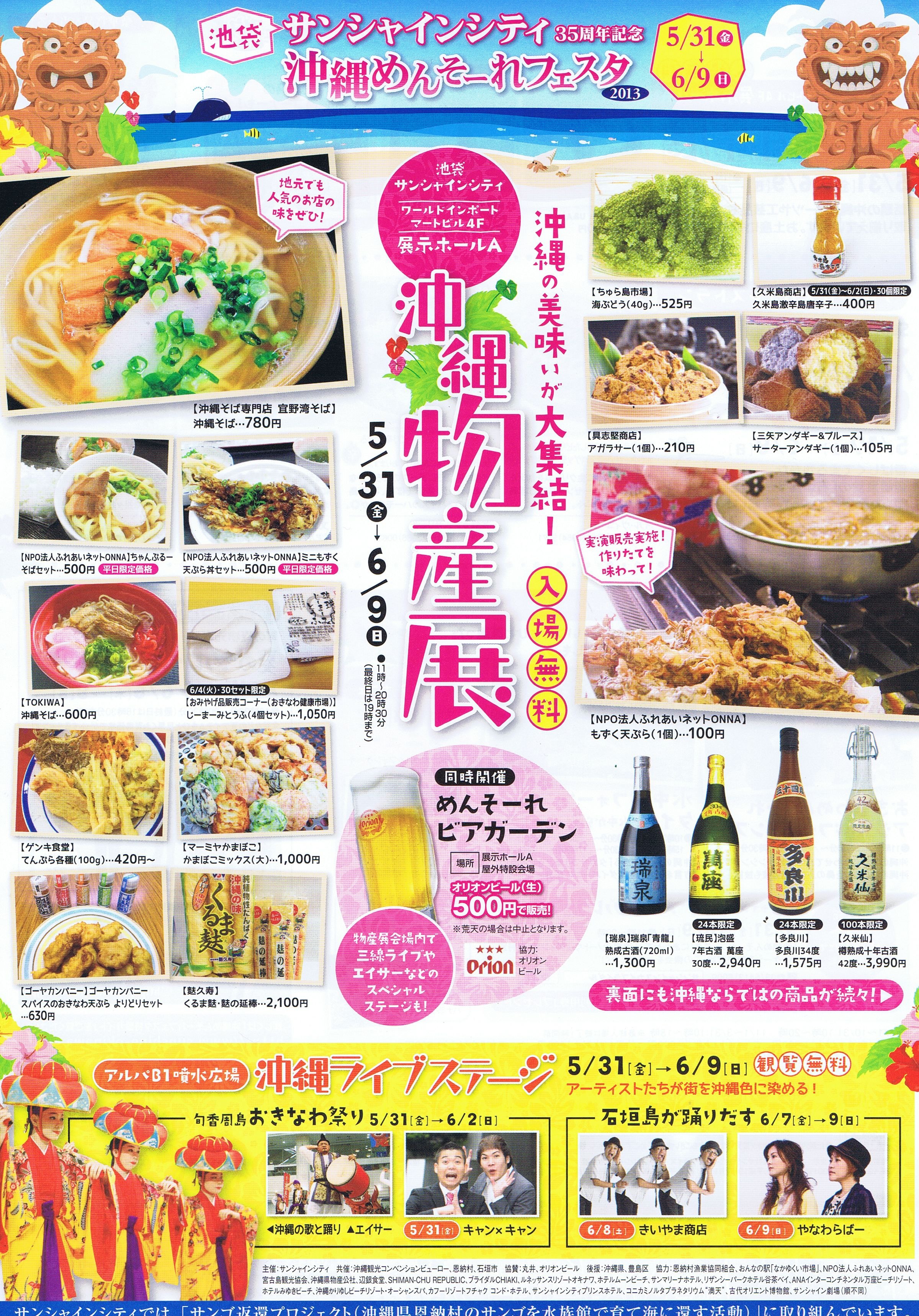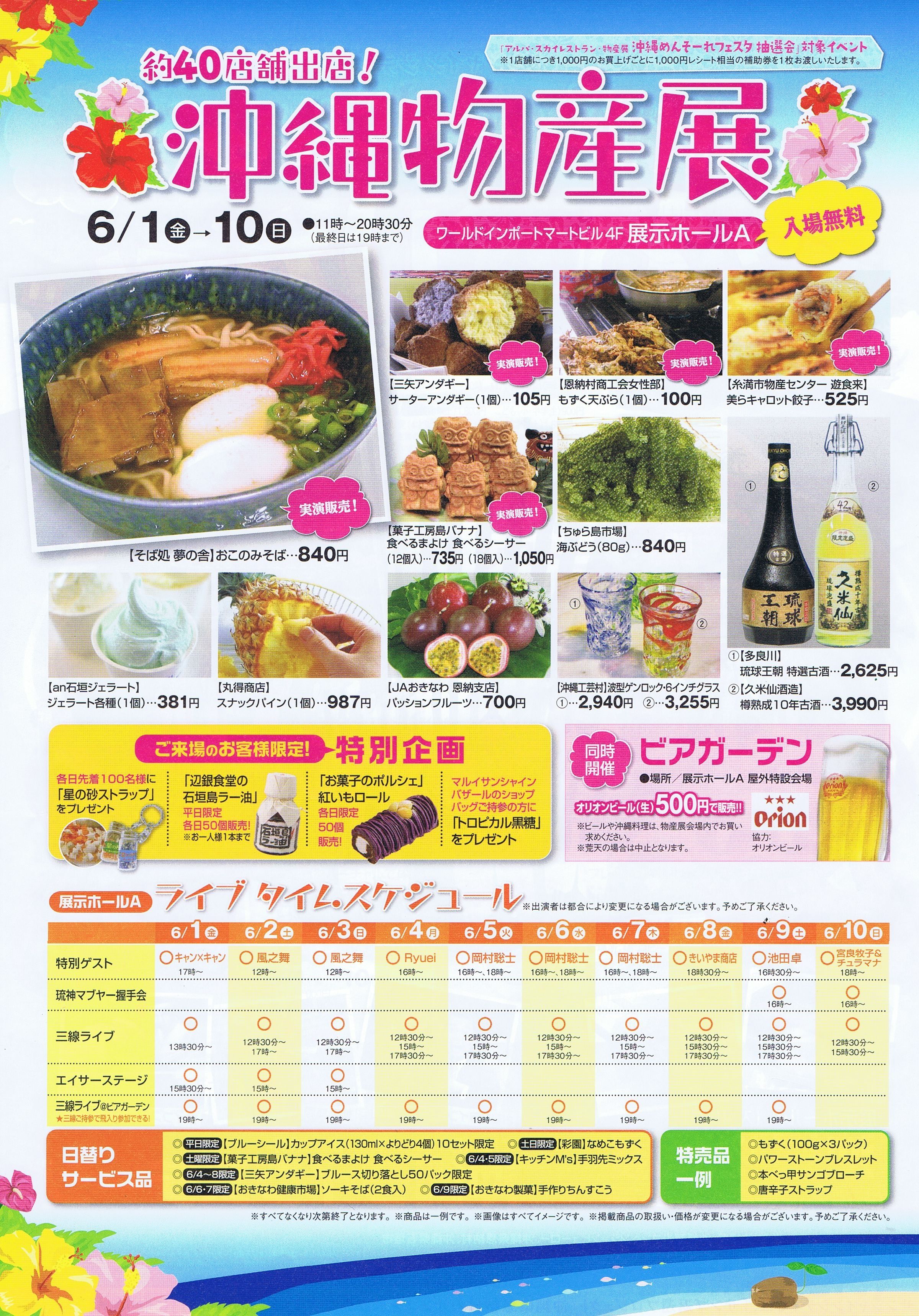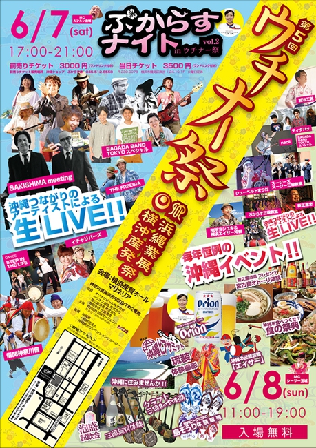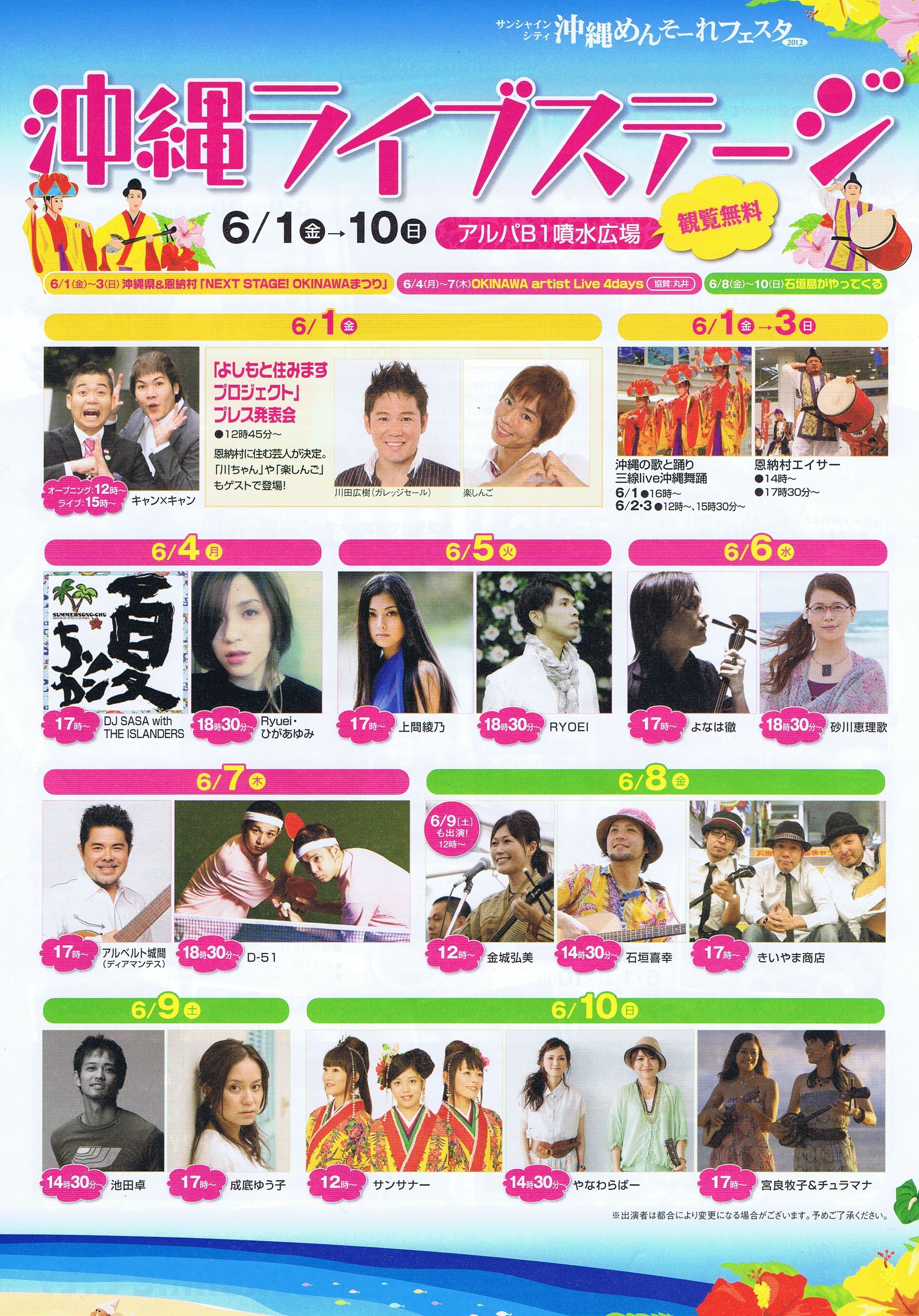 6/10:サンサナー(12:00~)、やなわらばー(14:30~)、宮良牧子&チュラマナ(17:00~)
