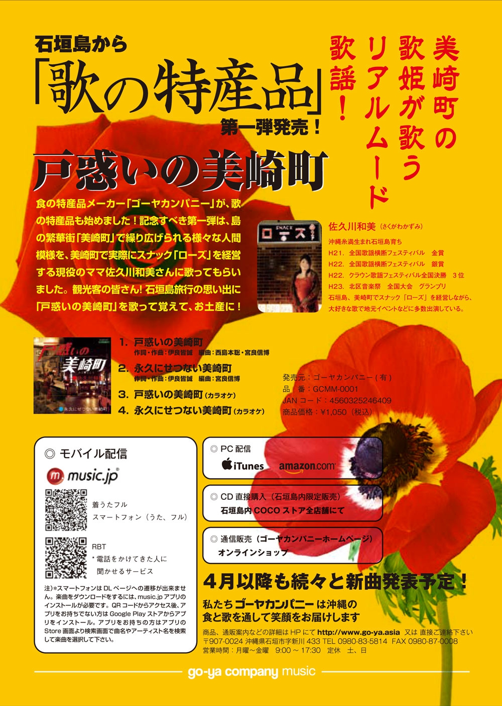 島の繁華街「美崎町」で繰り広げられる人間模様を美崎町で実際にスナック「ローズ」を経営するママ、佐久川和美が歌い上げる、まさにリアルムード歌謡!観光客の皆さんには、石垣島の旅行の思い出として、歌って覚えて「歌の特産品」をぜひお土産に!
