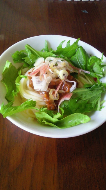 2...『島豚ごろごろ』をかけて水菜と茗荷とネギをトッピング!